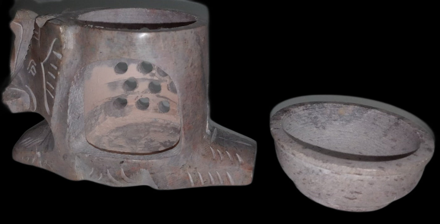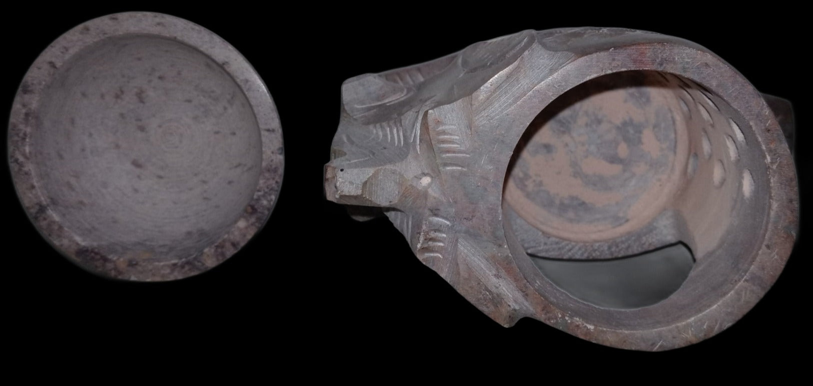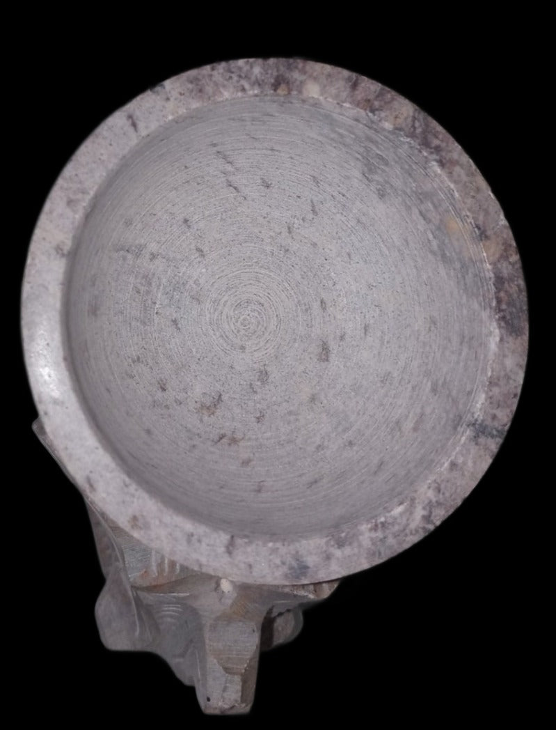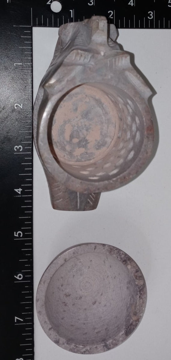This 3.5" hand carved soapstone elephant oil diffuser comes in 2 pieces: the elephant tea lite holder and the oil bowl on top. Simply put in a tea lite, put in your aromatic oil and enjoy! Also, should you be in the need for a small smudge bowl, the separate bowl will come in handy. This item is made of natural rock so small differences may be apparent although the color will still be the same. Each item is unique as they are hand carved. This item is imported from India.