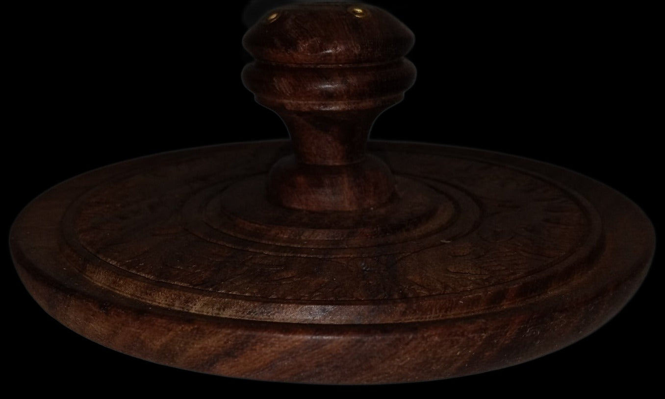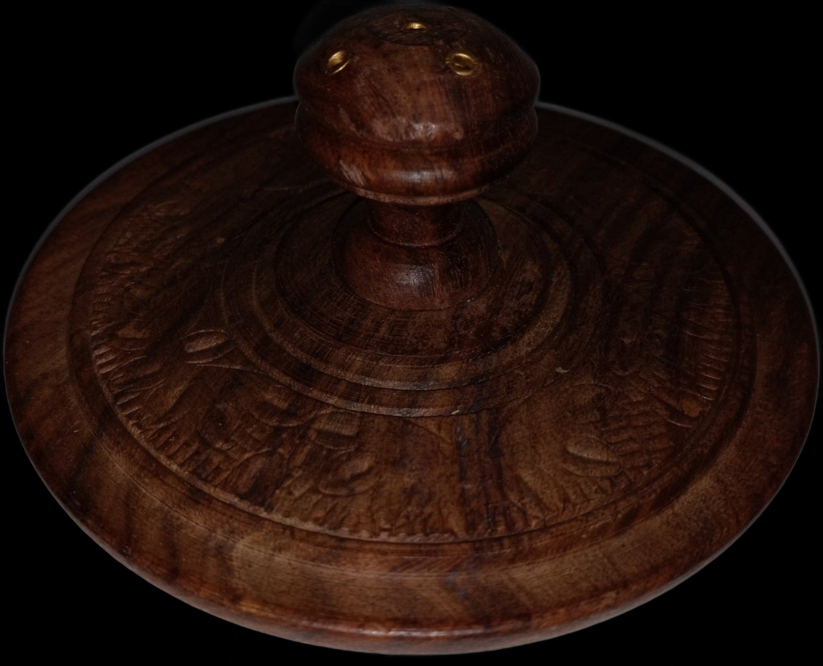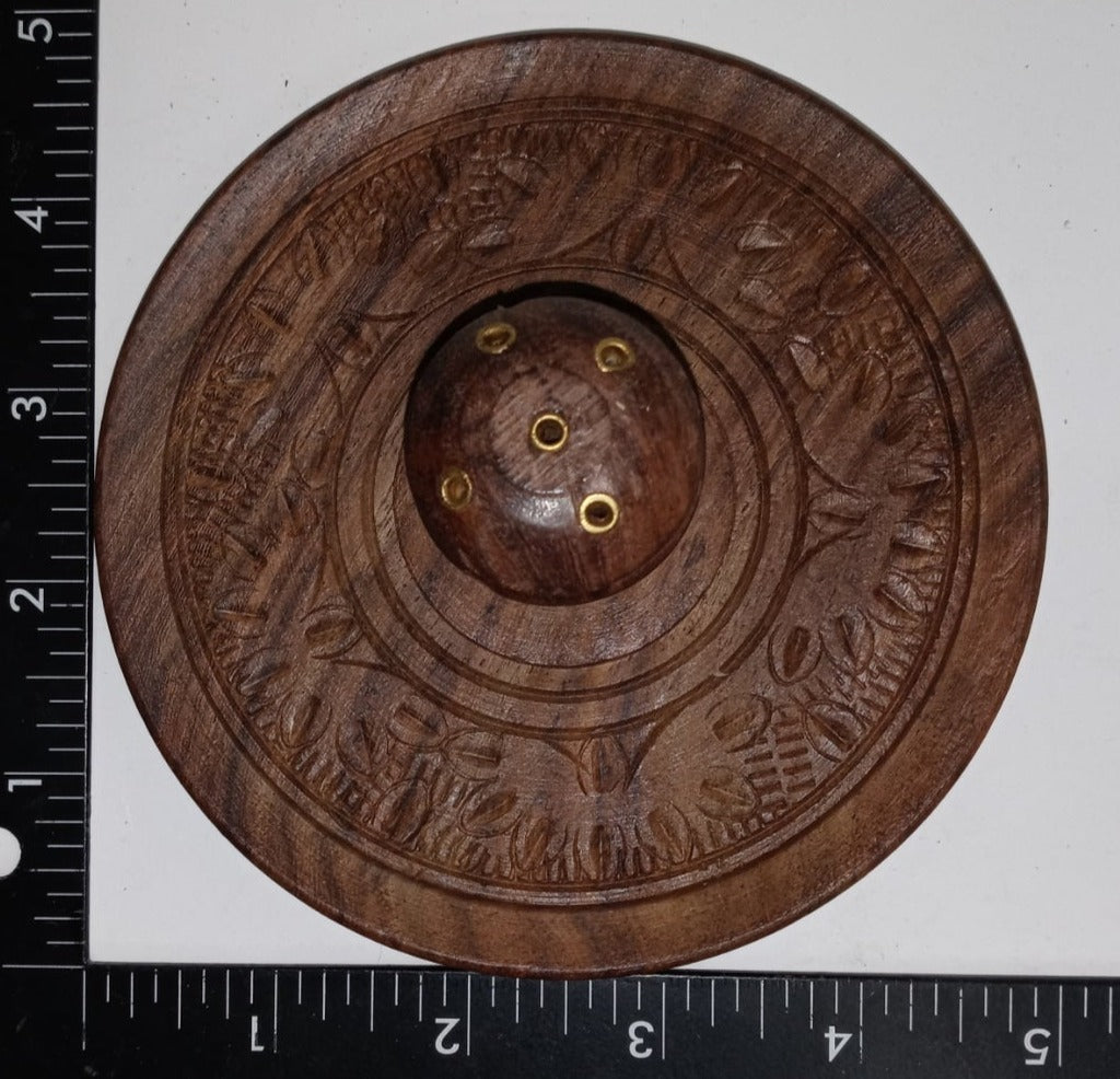 This item is hand carved and made of wood. Although this item may be a basic burner and ash catch, the design allows you to keep it out in the open for visitors (like the occasional visit from a travelling Bard) and not have to hide it away. Should you be someone who prefers a more Sherlockian environment, then this would be perfect not to stand out, but also be functional. Due to the fact that it is made of wood, grain patterns may differ, but the color will be natural wood. This item is imported from India.