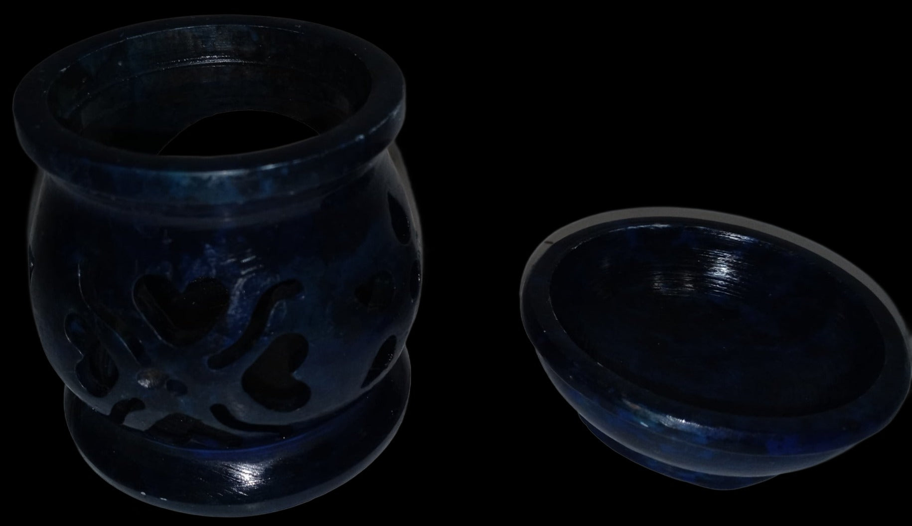This item is hand carved out of Indian Soapstone and comes in brown and blue depending on your Towers' decor. It is 2-pc. and has an opening for a votive or tea-lite and a removable bowl on top where you can add your favorite oil or wax scents. This item has a hand carved heart design that is beautiful enough to allow it to stay out even when not in use. Because this item is made of natural rock, the stone grain and color may vary but the general tone will remain the same. This item is imported from India.