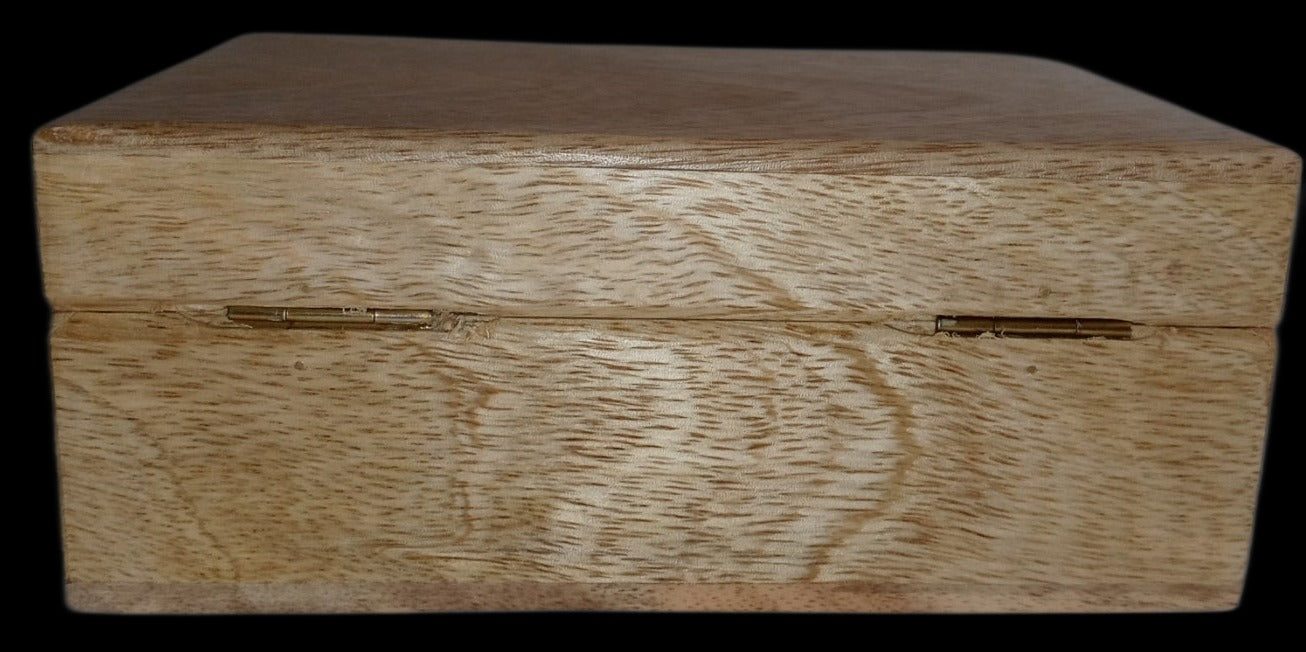 This handmade, smooth stash box measures 4x6 inches. Perfect for a discreet place to keep your...um.... incense. Sometimes you just don't want to beg for attention. Imported from India, this box has a small lip that helps it close solid. As it is made of natural wood, patterns in the wood may vary from box to box but will remain consistent in color.