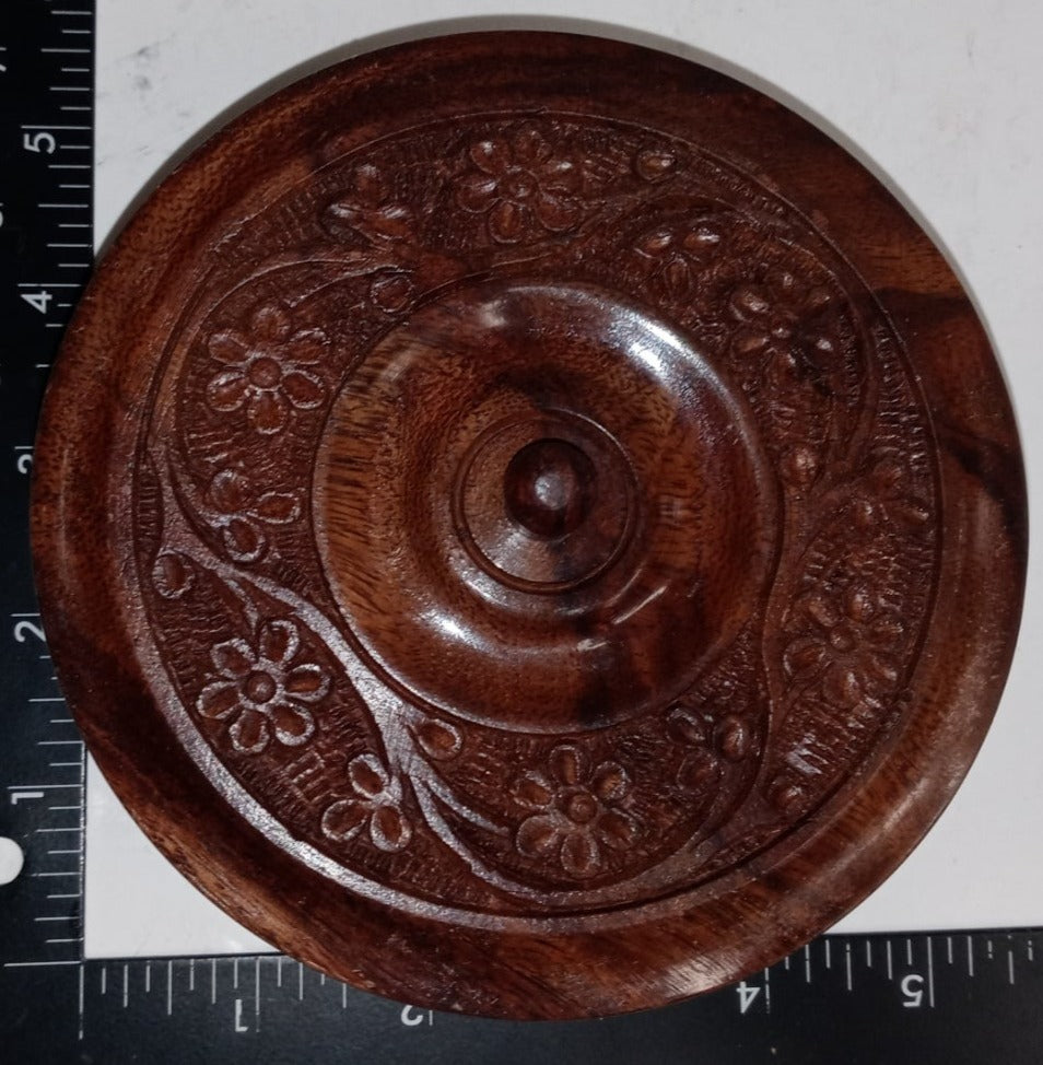 This item is hand carved wood and comes in 2-pcs. The Wizard uses one in his Apothecary. It is more durable than it looks and is surprisingly light. The color and wood grain are absolutely beautiful. This item works as a candy dish, stash box, or incense storage that you can leave out as it is nice to look at. As this item is made of natural wood, the wood grain and color may differ slightly from the picture, but the carving and design will be the same. This item is imported from India.