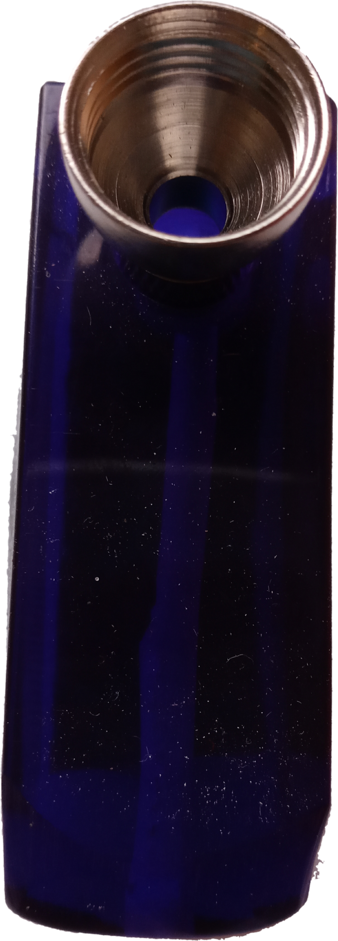 MUST BE 21 TO PURCHASE! This pipe is made by the Wizard in his "Candy" line of pipes. (Because it looks like candy.) Made of safe acrylic, this pipe has a slight bend to it to be more comfortable in the hand. Blue with tiny pieces of other colors within it. This pipe has felt on the bottom to keep from damaging tabletops or clanking when being put down. Perfect for portability and personal use.