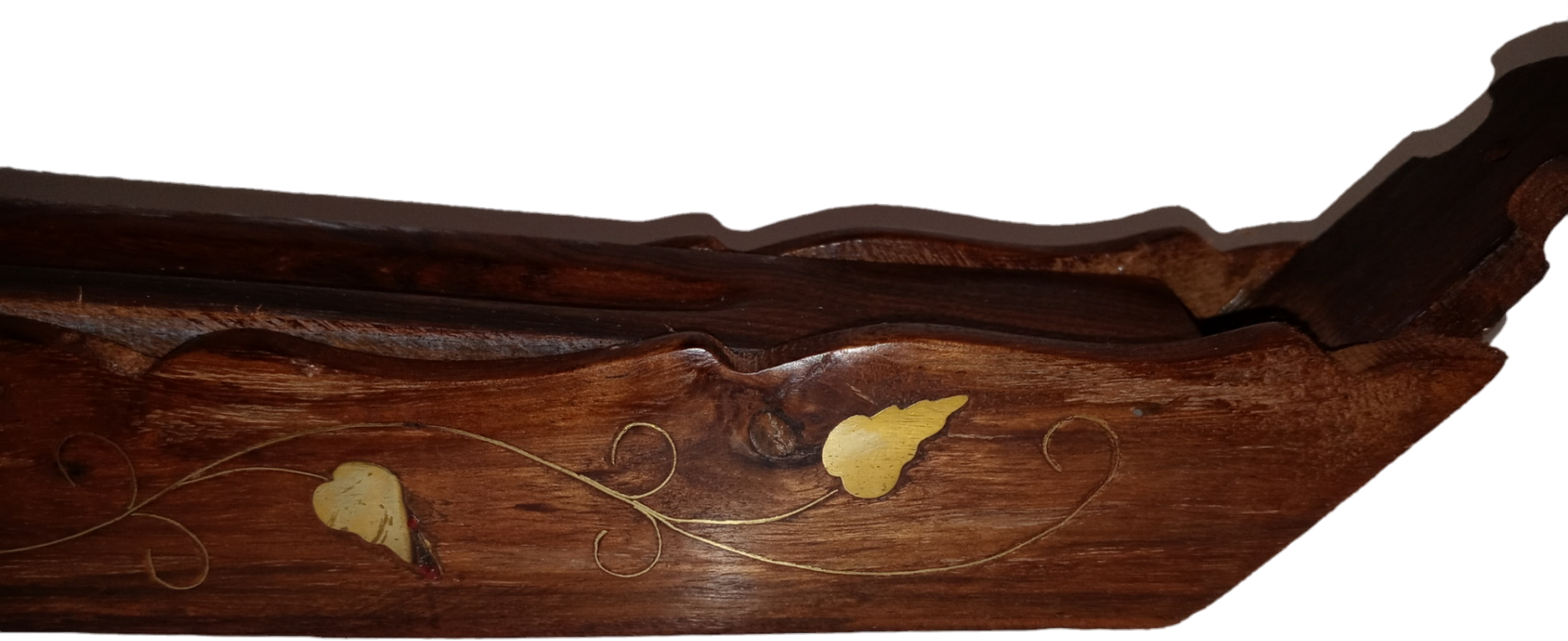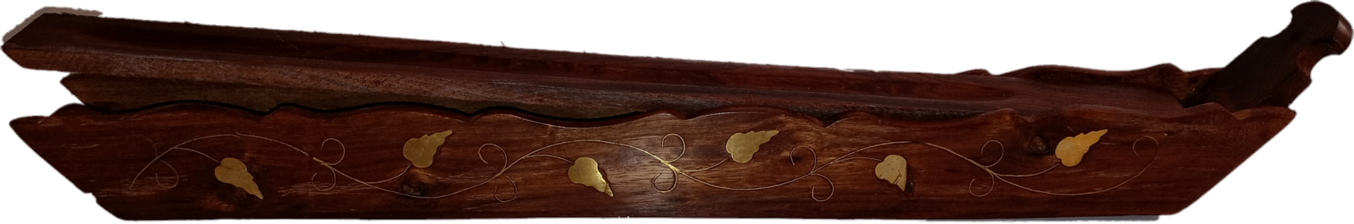 Extra-Long Vine Brass Inlay, Hand Carved, Incense Coffin Boat