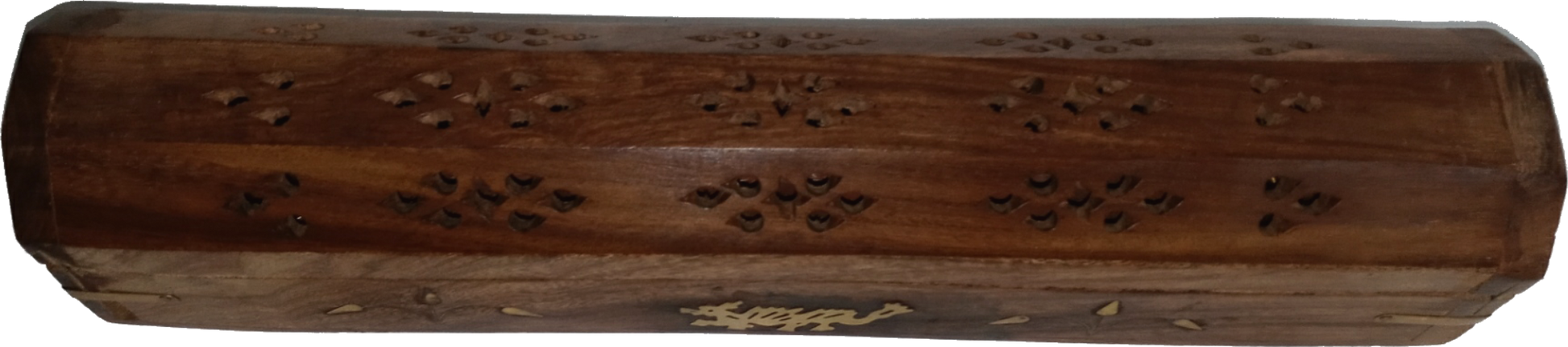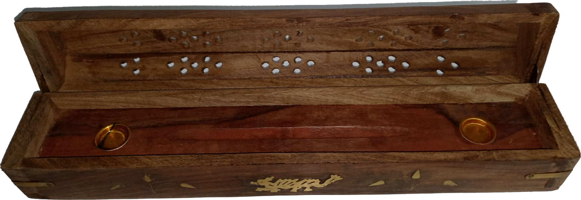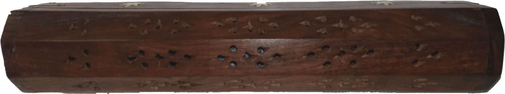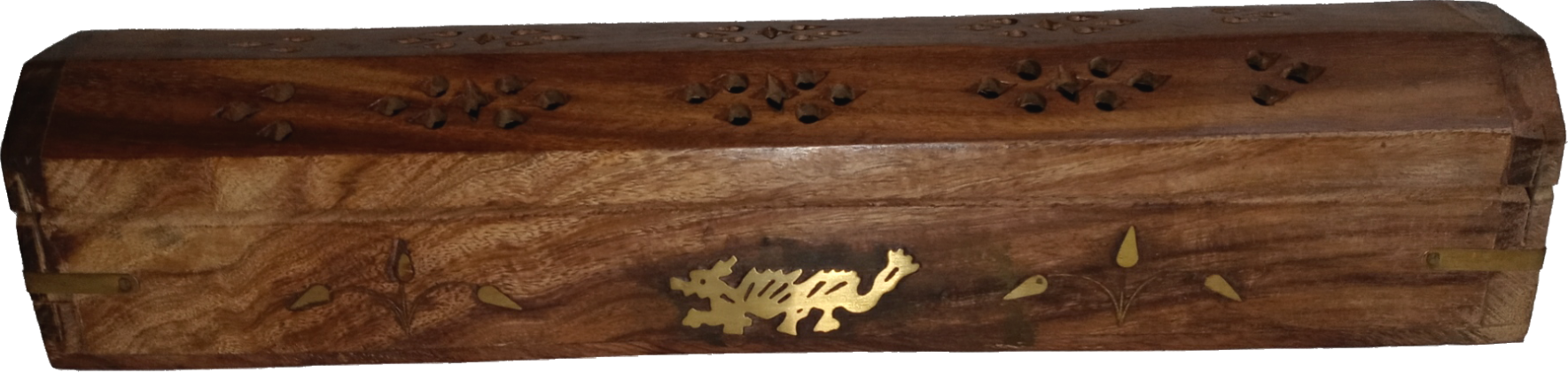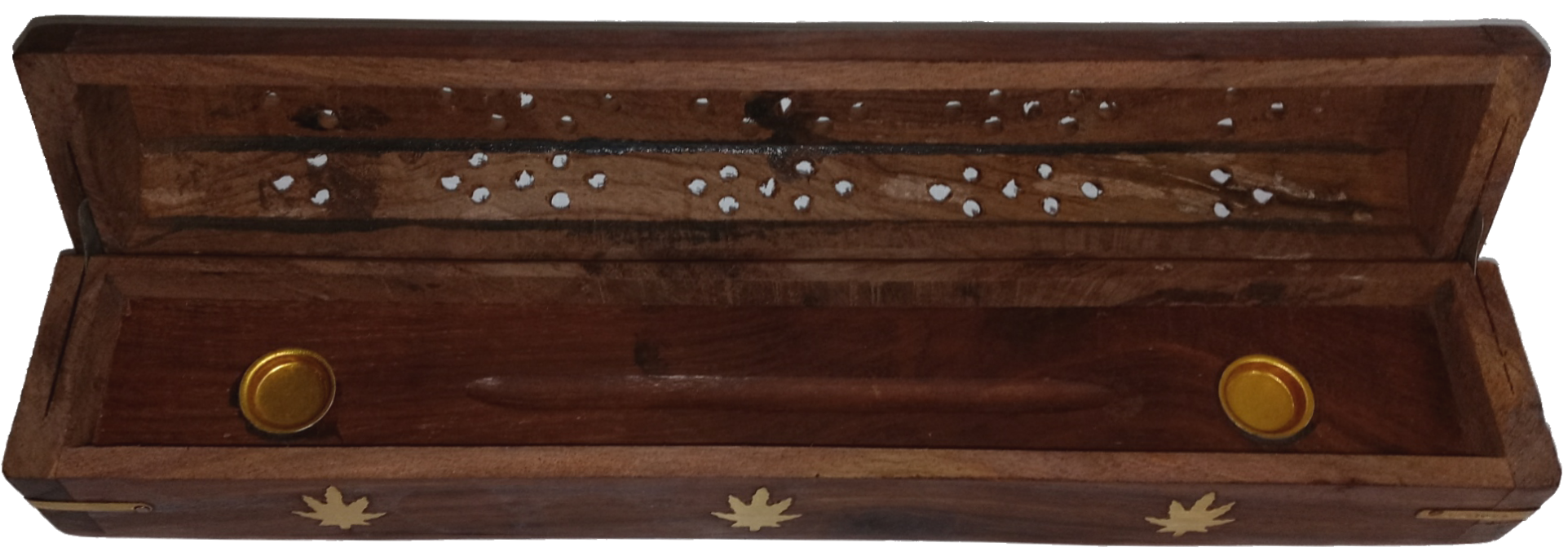 This 12" incense box and burner comes in three styles: Dragon, Marijuana Leaf, and Peace Sign. The inlays are brass (because the Gremlins insisted they be shiny). It is natural wood color and can burn either stick or cone incense. Perfect for making a tiny statement to that in-law that thinks they are better than you. There is a small door on the side opens to store incense.