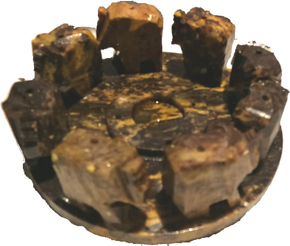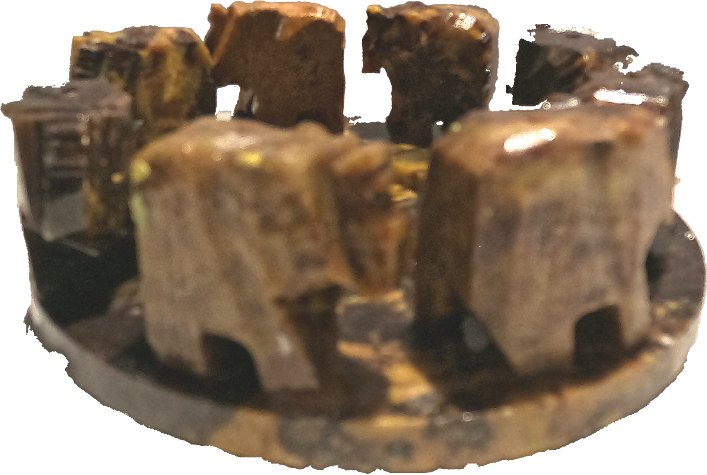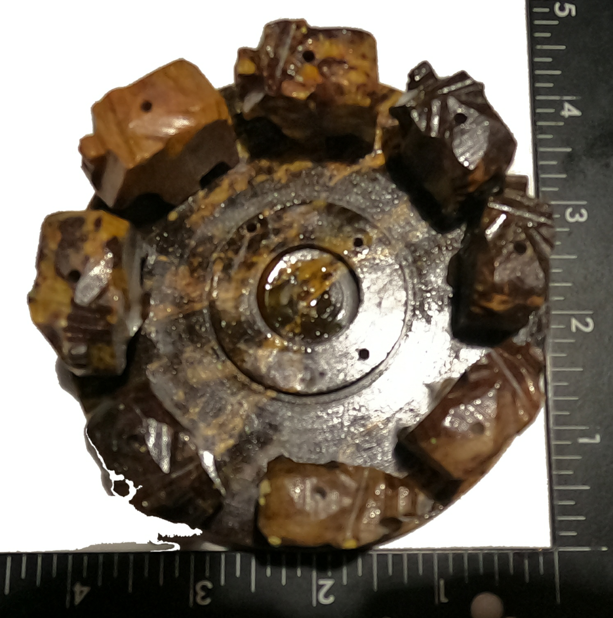 This 4" diameter Indian Soapstone Incense Burner is handmade and has a circle of soapstone elephants with raised trunks parading its perimeter. This incense burner has holes for stick incense in the tops of the elephants as well as around the center. Further, there is a center well for cone incense. This item is imported from India. As soapstone is a natural rock, no two are the same and COLOR AND PATTERN MAY DIFFER from another. This item can be an excellent gift for someone who likes something different for their incense.
