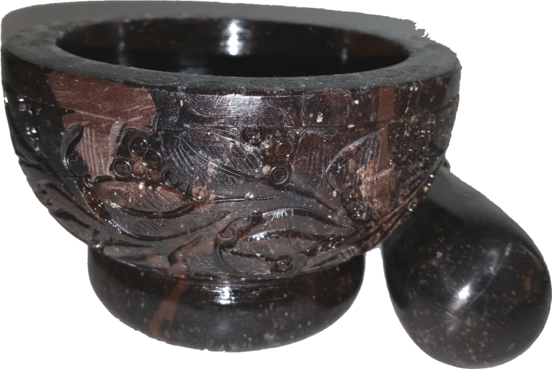 This mortar and pestle are hand carved with a floral design around the outside. It is polished and sturdy. Not as demanded as marble but very beautiful, nevertheless. Due to the nature of it being natural rock, exact stone color may differ slightly from image, however the color is the same. This item is handmade and imported from India.